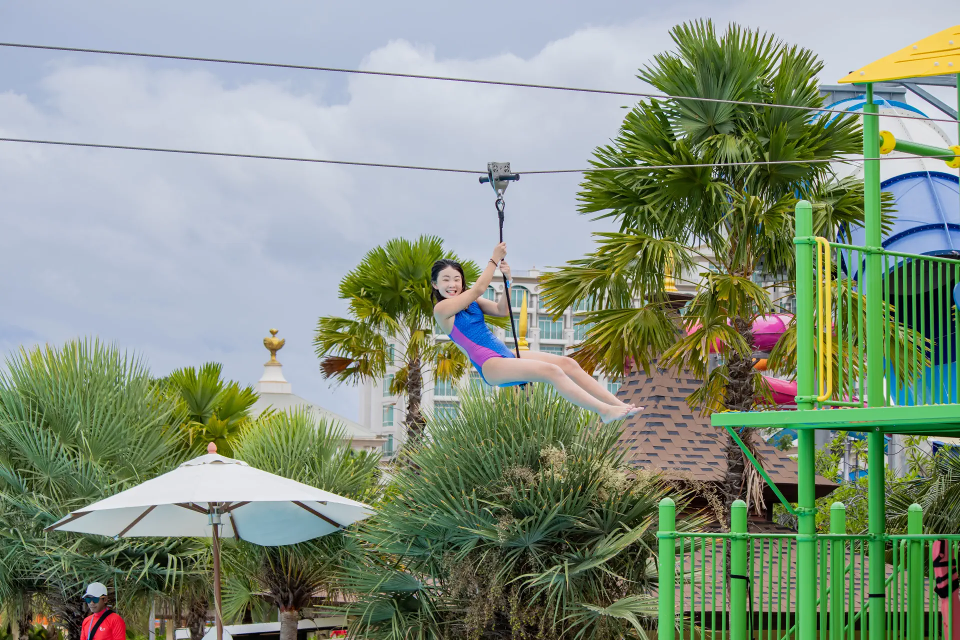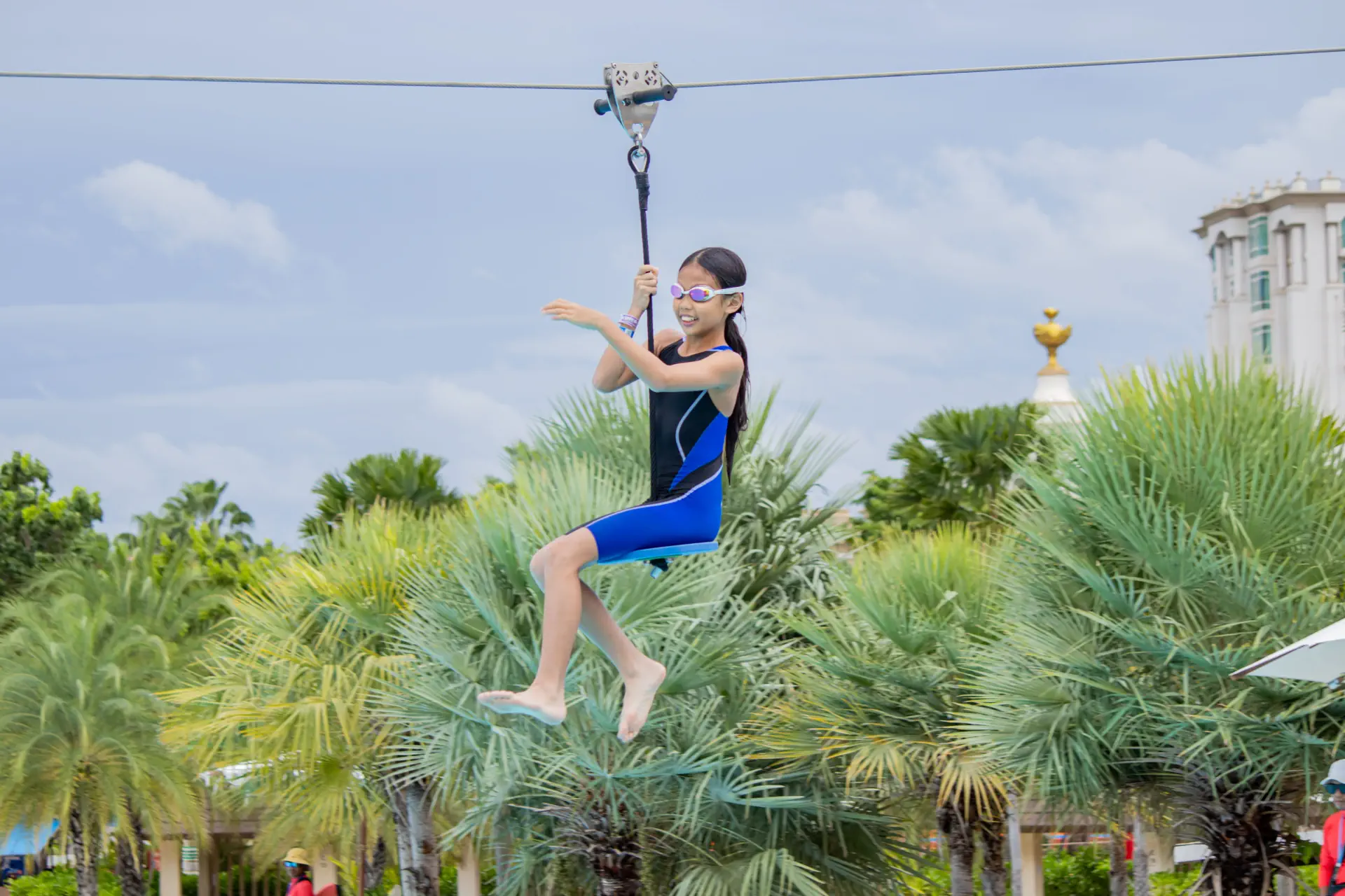 Soar across the sky on our thrilling Zipline that flies high above the massive wave pool at Garden City Water Park! Feel the rush of adrenaline and enjoy a bird’s-eye view of the action below as you glide from one end to the other. It’s the perfect mix of excitement and breathtaking scenery — a must-try for all adventure seekers!